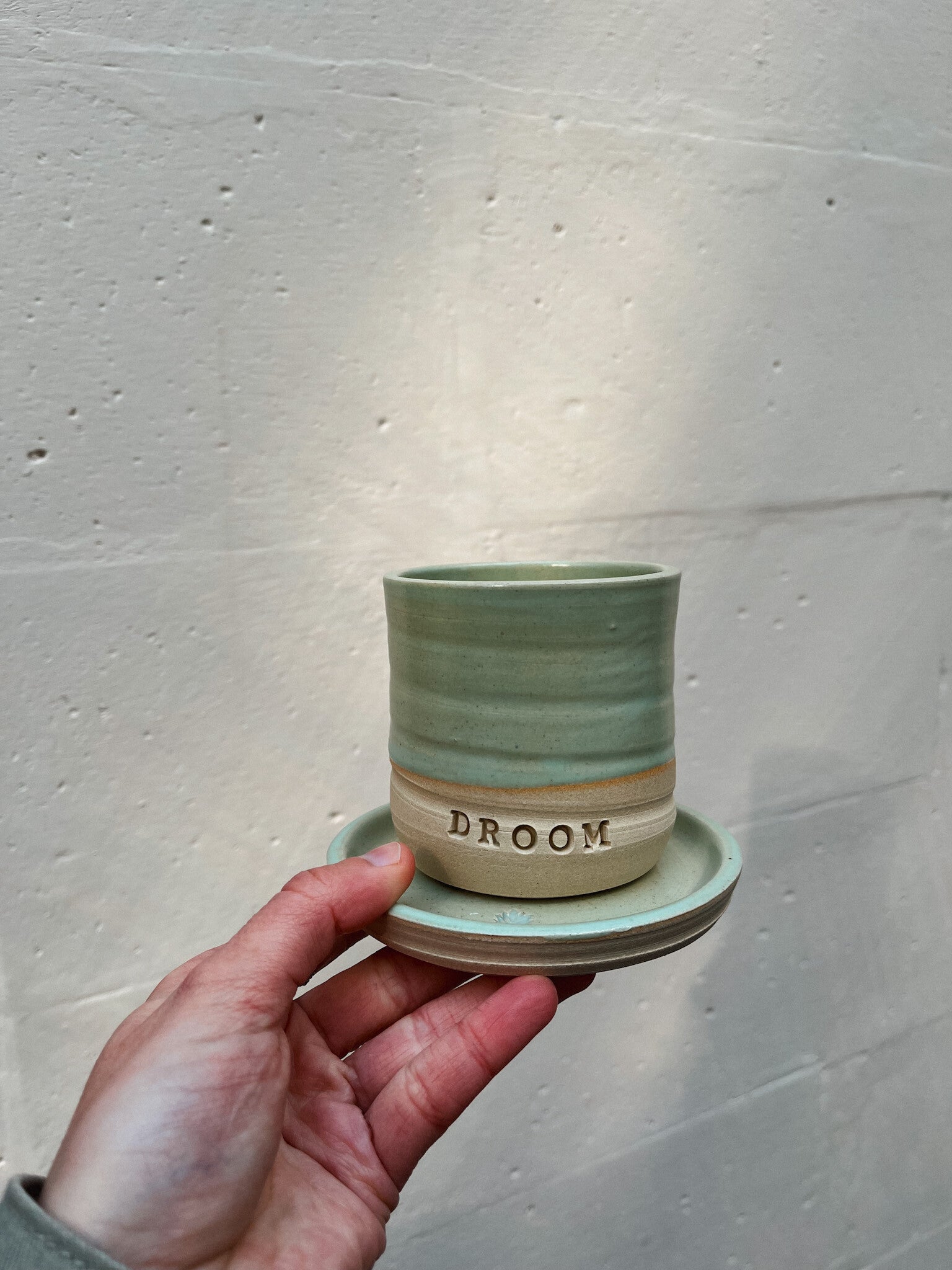 Kadoo doosje DROOM bevat een kopje DROOM, een bordje DURF DROMEN en 2 schrijfselkaarten die horen bij het thema.