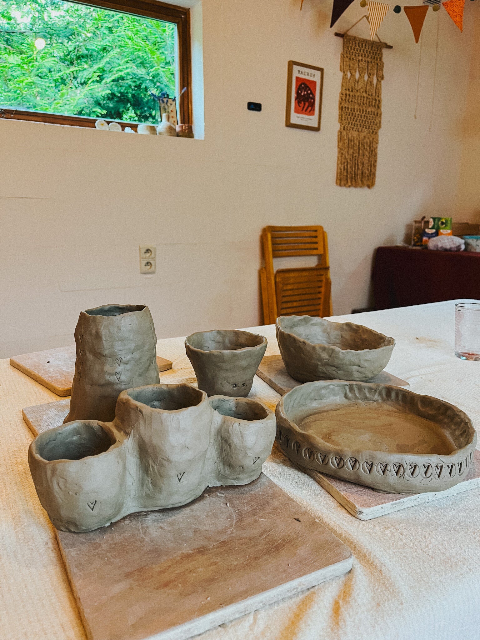 Wie kiest voor kleien of pottery painting betaalt extra voor de afwerking & bakkosten (kleien) en de reeds door mij voorbereide stuks (pottery painting) (€20 per stuk).